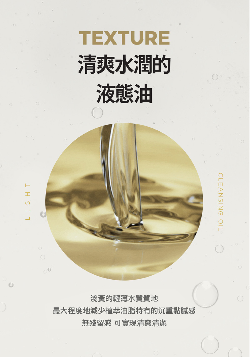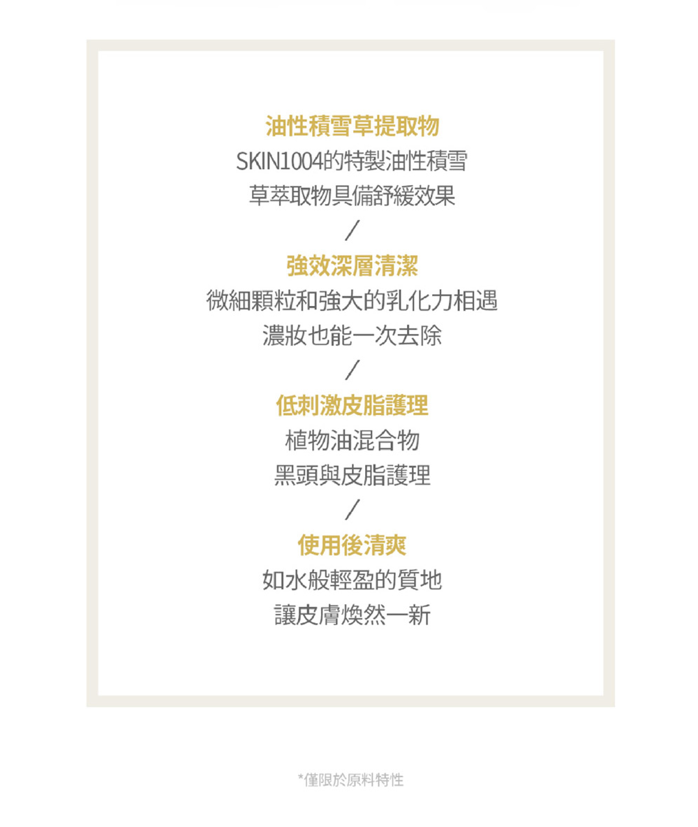 - 質地如水般輕盈,適合剛接潔面油或卸妝油的人士