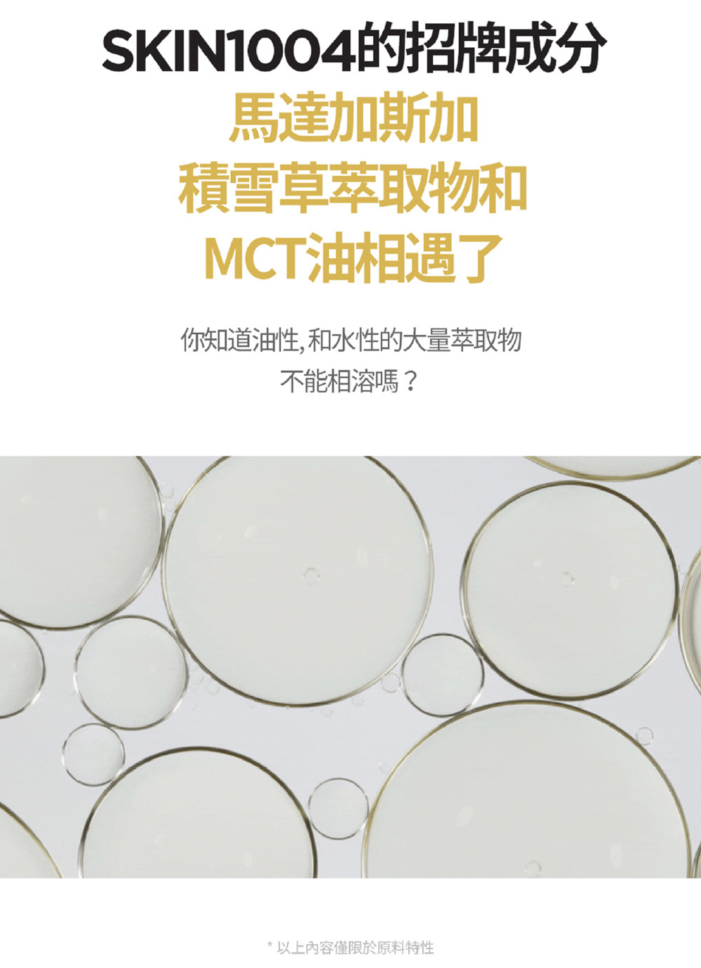 - 積雪草萃取(1,000 ppm)含有羥基積雪草酸和積雪草苷等活性成分,有助膠原蛋白合成,促進傷口癒合和皮膚再生。它還具有舒緩功效,有助解決肌膚問題。