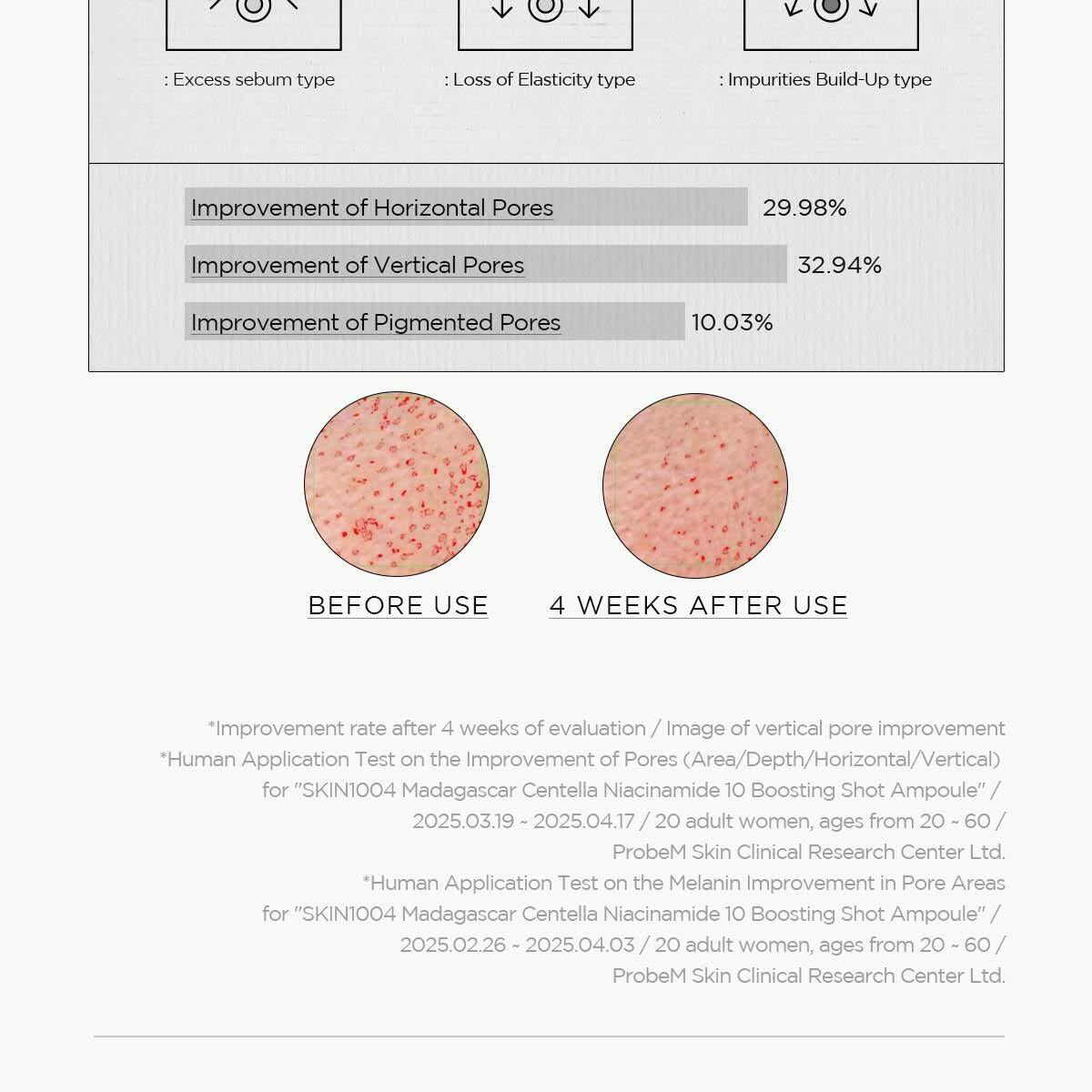 菸鹼醯胺和傳明酸可解決水平、垂直和色素沉著毛孔問題,同時改善和撫平肌膚。
