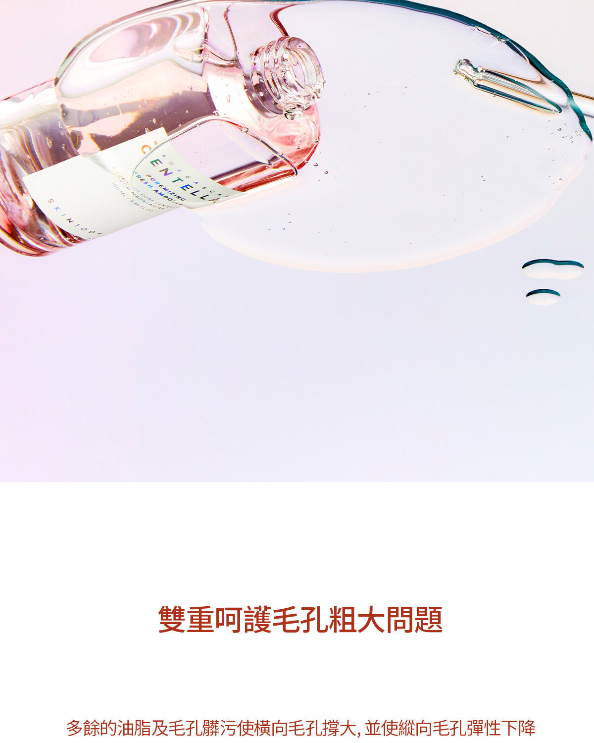 - 配方不致粉刺的安瓶,能有效收細毛孔