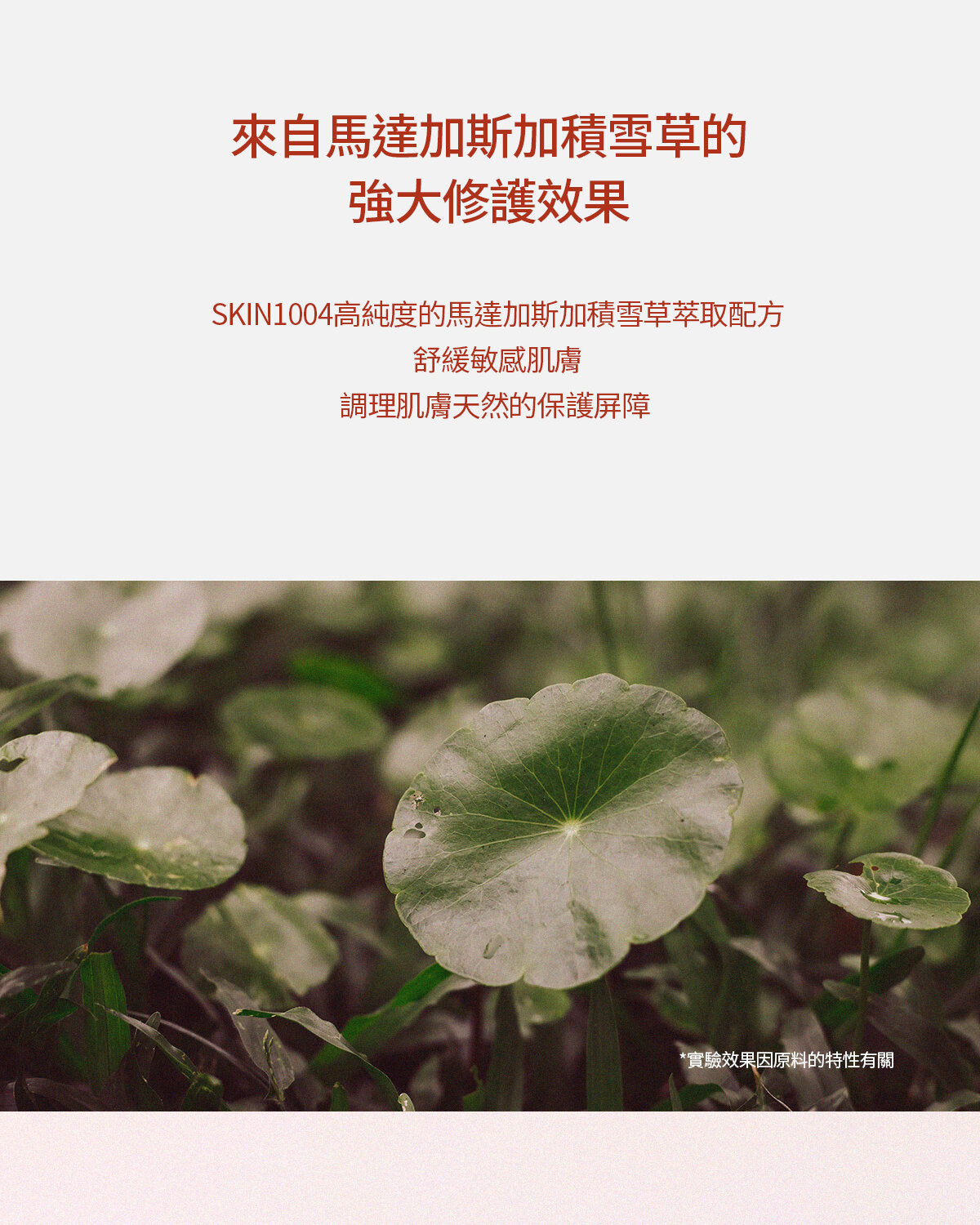 - 積雪草葉水(5,150 ppm) 源自積雪草,含有羥基積雪草酸和積雪草苷等活性成分,有助於膠原蛋白合成,促進傷口癒合和皮膚再生。它還具有舒緩功效,有助解決肌膚問題。