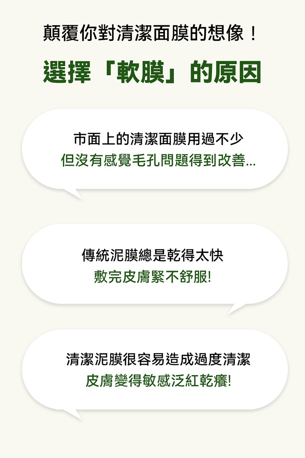 🖤【軟膜質地】顛覆傳統清潔面膜 結合清潔力與舒適感