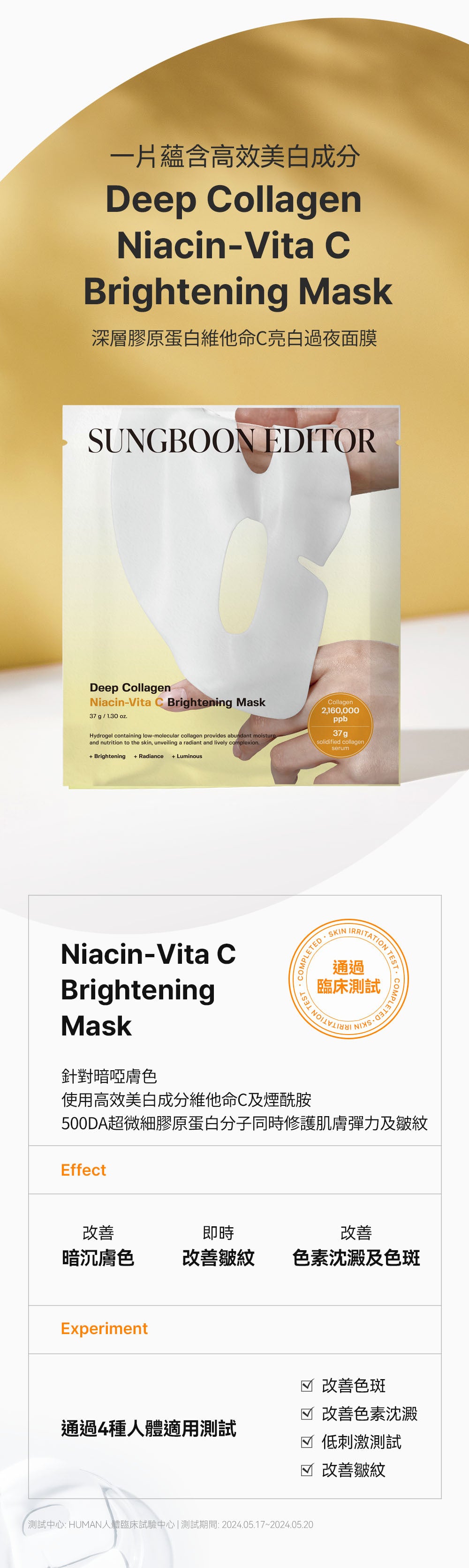 Sungboon Editor [美白均勻膚色]深層膠原蛋白維他命C亮白過夜面膜(4片裝)