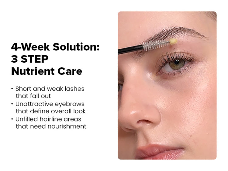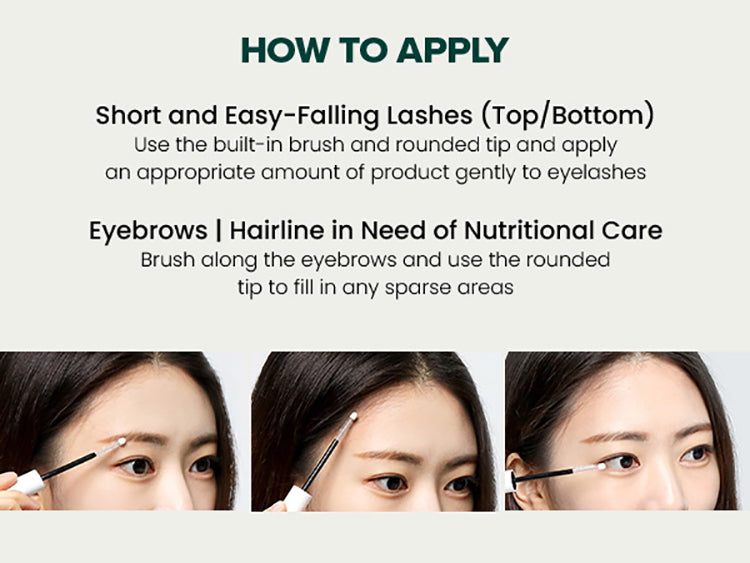 1.每天早晚潔面後,在基礎護理最後階段用於煩惱部位(睫毛、眉毛、髮際線)