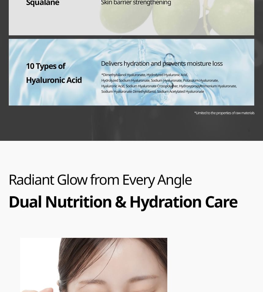 膠囊乳霜和保濕啫咖哩的雙重配方,同時呵護肌膚營養彈性和水潤光澤。