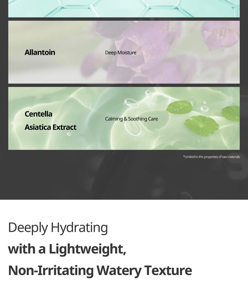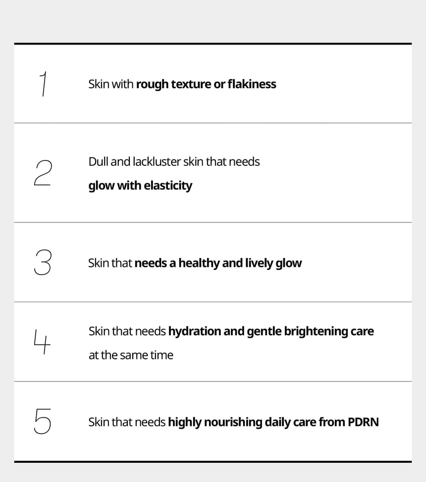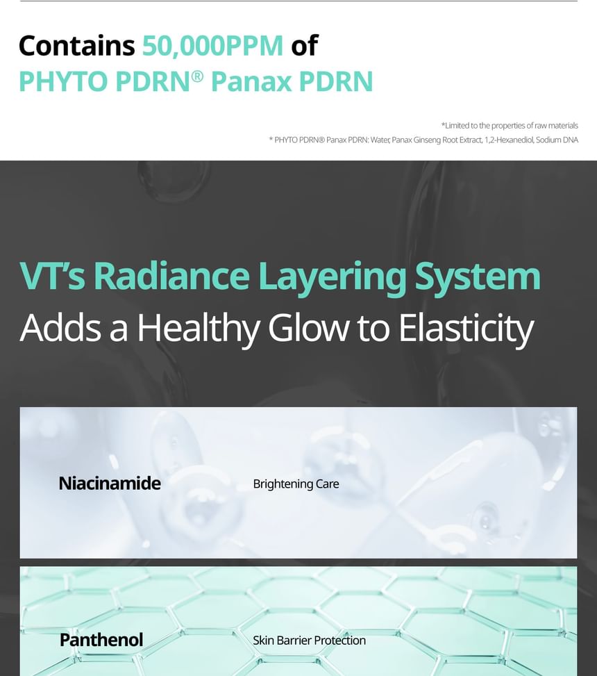 深層保濕: 含有Phyto PDRN和Panax PDRN(從野山人參提取),深入肌膚底層補充水分,提供持久保濕效果,改善肌膚彈性和柔軟度。