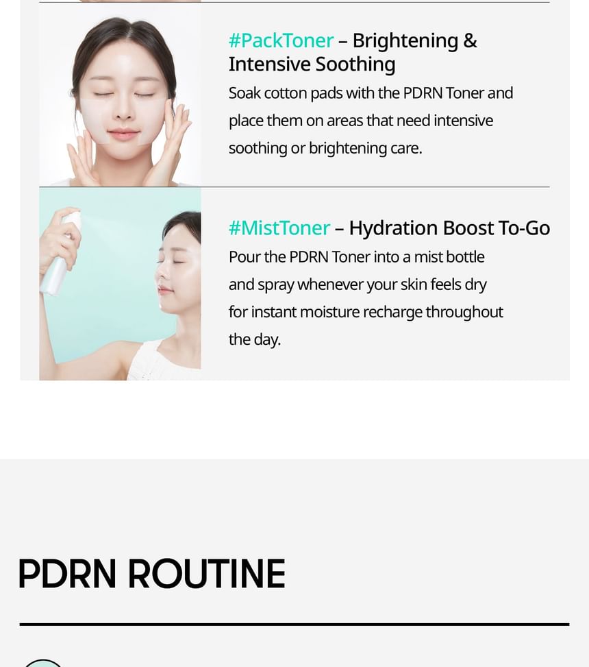 舒緩與修復: 富含植物成分和PDRN,促進肌膚再生,舒緩敏感肌膚,改善紅腫或刺激,打造平滑、平靜的膚質。
